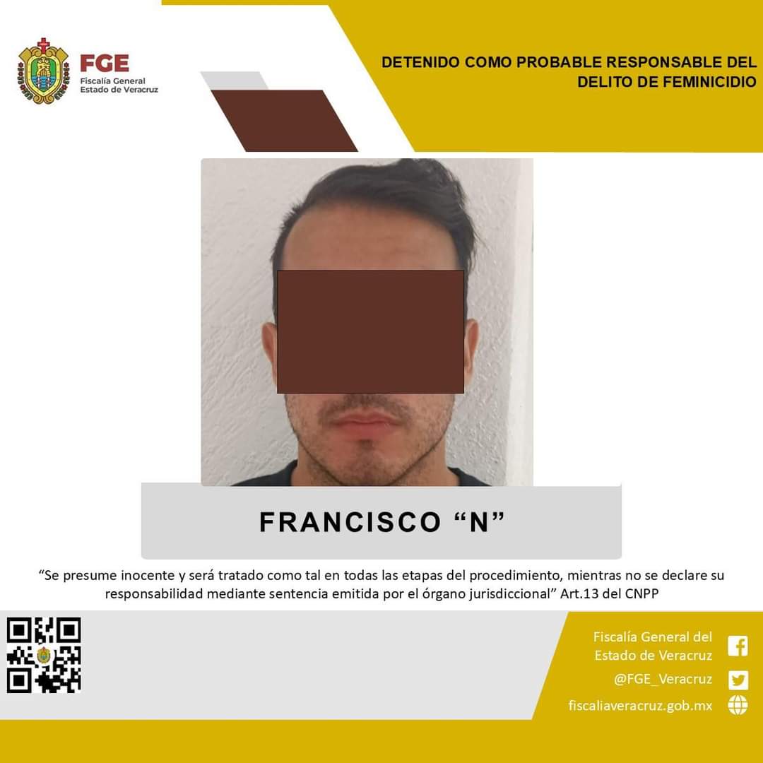 Córdoba, Ver., a 27 de agosto de 2024.- La Fiscalía General del Estado informa que, elementos de la Policía Ministerial en colaboración con la Fiscalía del Estado de Quintana Roo, cumplimentaron orden de aprehensión en contra de Francisco “N” como probable responsable del delito de feminicidio, cometido en agravio de la víctima identificada con las iniciales A.T.H. y/o A.T.T.