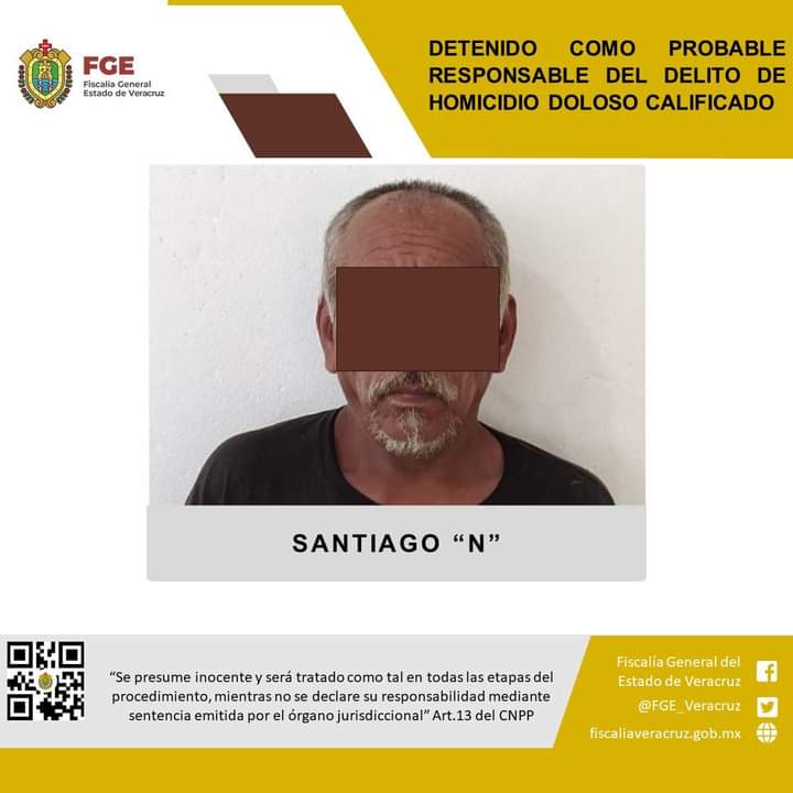Papantla, Ver., 26 de abril del 2024.- La Fiscalía General del Estado informa que, elementos de la Policía Ministerial cumplimentaron orden de aprehensión en contra de Santiago “N” como probable responsable del delito de homicidio doloso calificado cometido en agravio de la víctima identificada con las iniciales G.R.C.