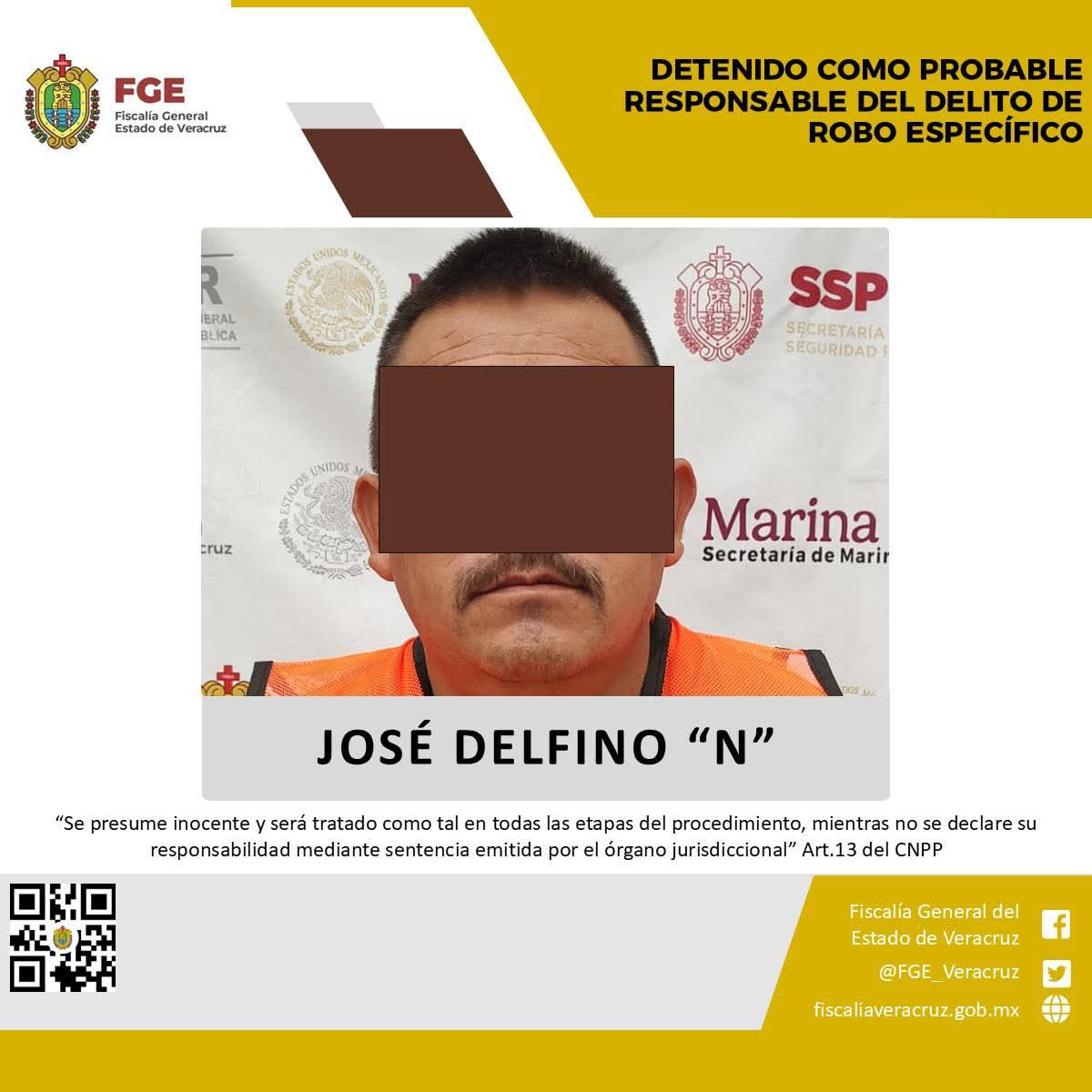 Córdoba, Ver., 24 de junio 2025.-La Fiscalía General del Estado informa que, elementos de la Policía Ministerial cumplimentaron una orden de aprehensión en contra de José Delfino “N” como probable responsable del delito de robo específico, en su modalidad de robo de mercancía con violencia, en agravio de las empresas Diageo México Comercializadora S.A. de C.V., y Bacardi y Compañía S.A. de C.V.