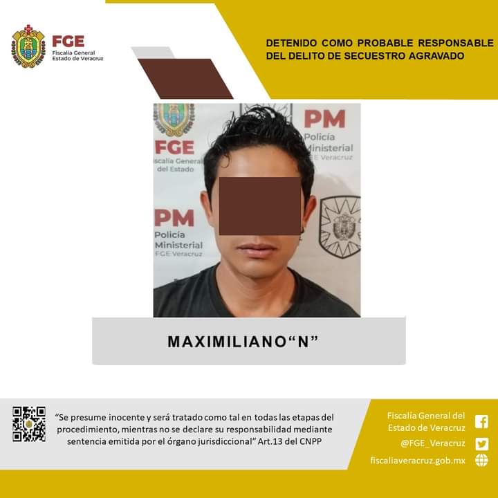 Tuxpan, Ver., 16 de febrero 2024.- La Unidad Especializada en Combate al Secuestro cumplimentó orden de aprehensión en contra de Maximiliano “N” como probable responsable del delito de secuestro agravado.