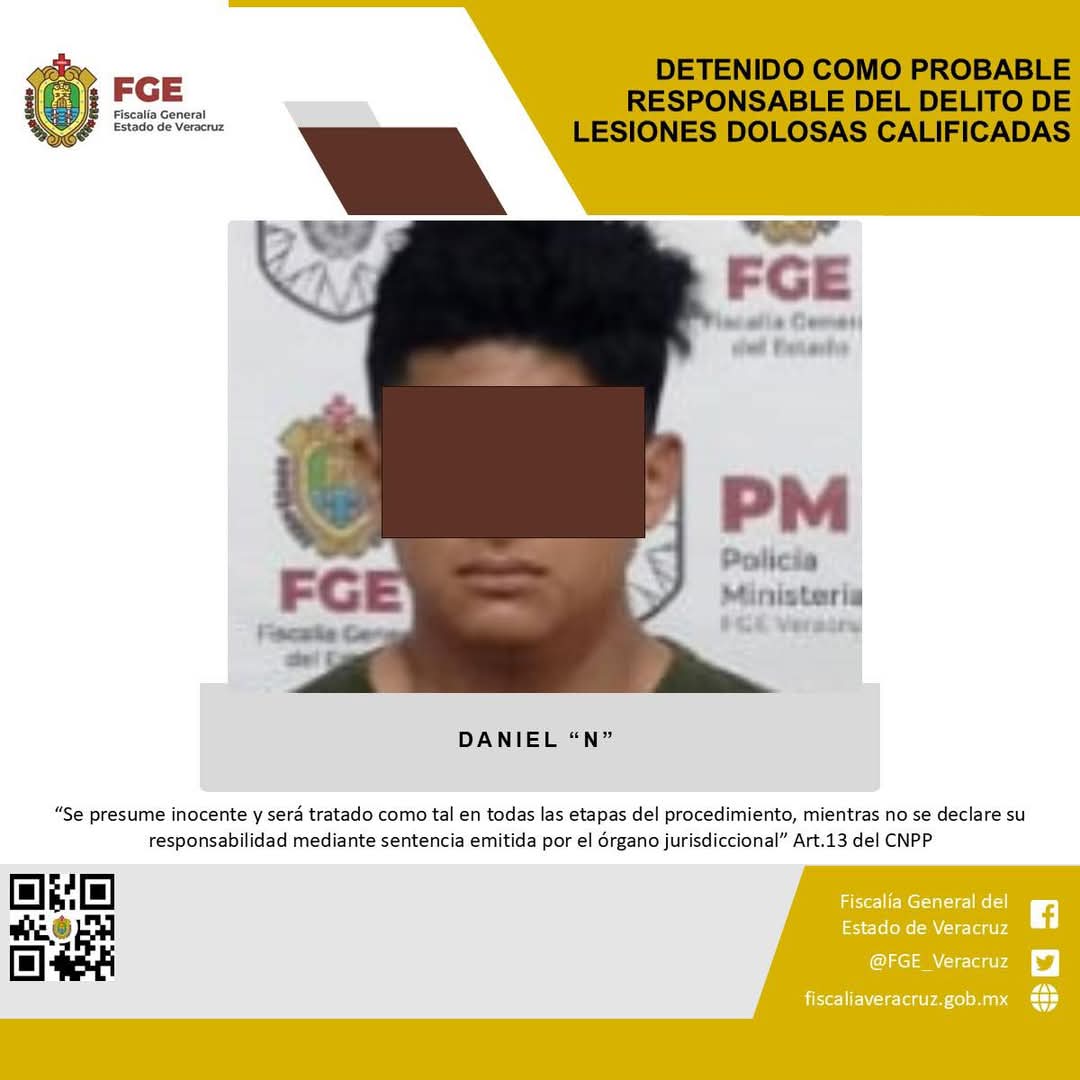 Tlapacoyan, Ver., a 23 de diciembre de 2024.-La Fiscalía General del Estado informa que, elementos de la Policía Ministerial en colaboración con elementos del Ejército Mexicano, cumplimentaron orden de aprehensión en contra de Daniel “N”, considerado objetivo prioritario y presunto generador de violencia es este municipio y en Martínez de la Torre, como probable responsable del delito de lesiones dolosas calificadas, cometido en agravio de la víctima identificada con las iniciales R.R.B.