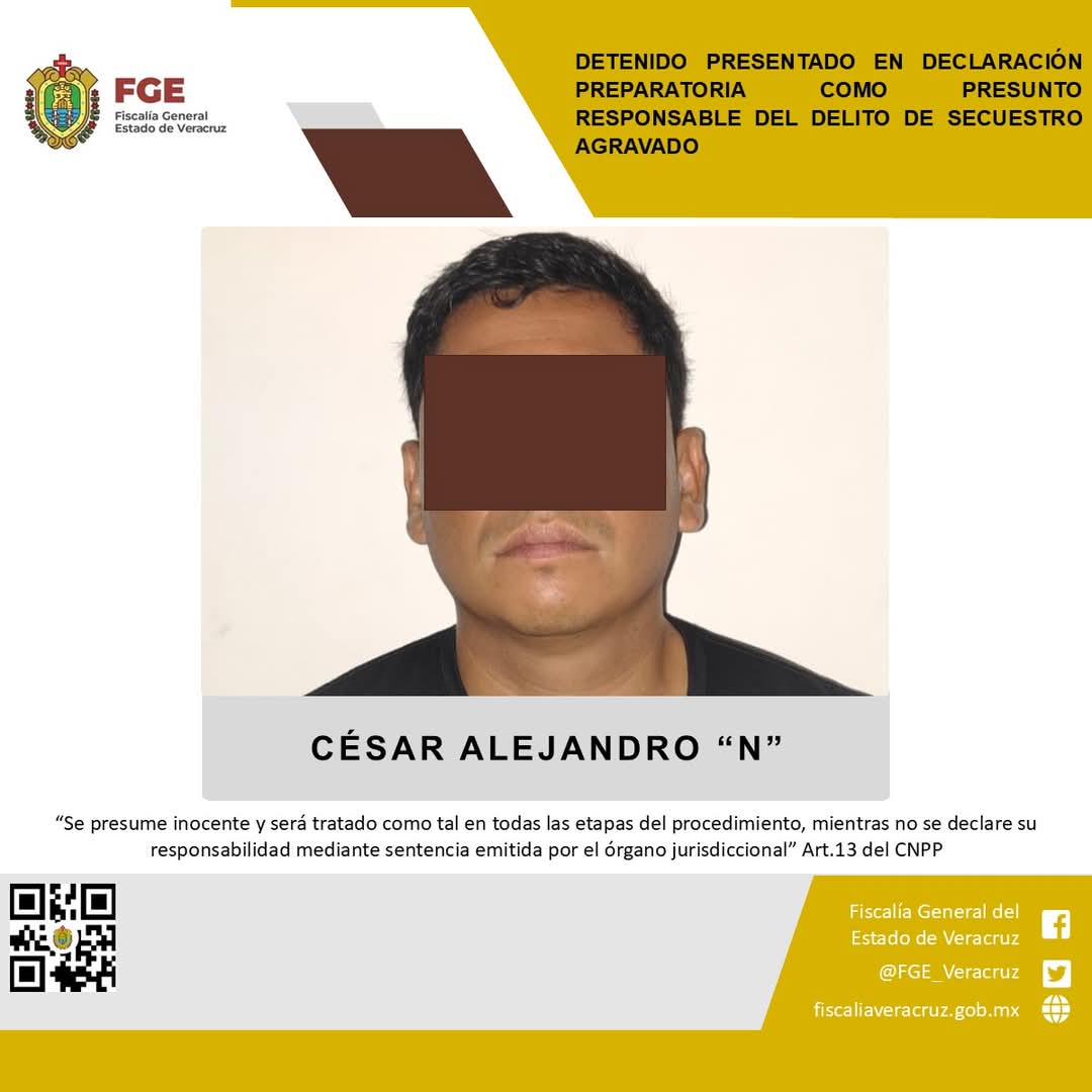 Medellín de Bravo, Ver., 29 de mayo de 2025.- Un juez de control de esta demarcación judicial emitió declaración preparatoria en contra de César Alejandro “N” como presunto responsable del delito de secuestro agravado en agravio de la víctima identificada con las iniciales L.G.L.D.