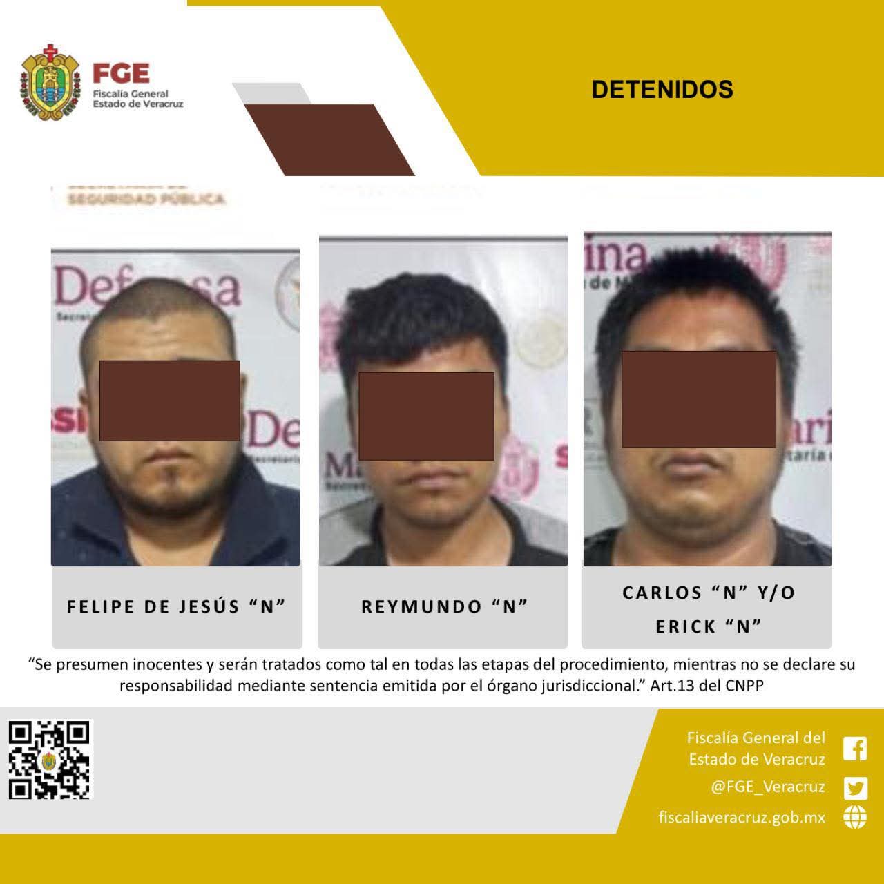 Catemaco, Ver., a 7 de junio 2025.- La Fiscalía General del Estado informa que, elementos de la Policía Ministerial, adscritos a la Unidad Especializada en Combate al Secuestro (UECS), en coordinación con elementos de la Secretaría de Seguridad Pública, detuvieron en flagrancia a Carlos “N” y/o Erick “N”, Reymundo “N” y Felipe de Jesús “N”, considerados probables integrantes de una célula delincuencial que operaba en la región de San Andrés Tuxtla, Santiago Tuxtla y Catemaco.