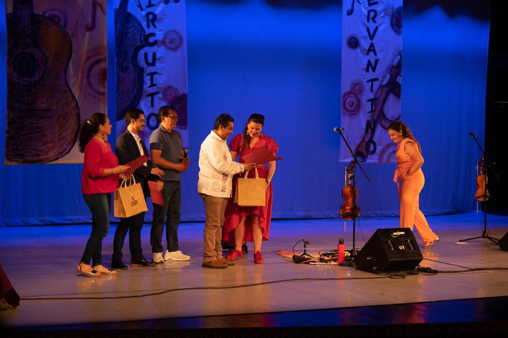 Finalmente, el regidor Daniel Vázquez Hernández, el titular de la Agenda 2030 acompañado de la directora de Educación, Cultura y Deporte, Estefana Contreras y el Delegado de la SEV, Rogelio Gamboa Dorantes otorgaron un reconocimiento a la agrupación irlandesa y un obsequio con productos representativos de la ciudad.