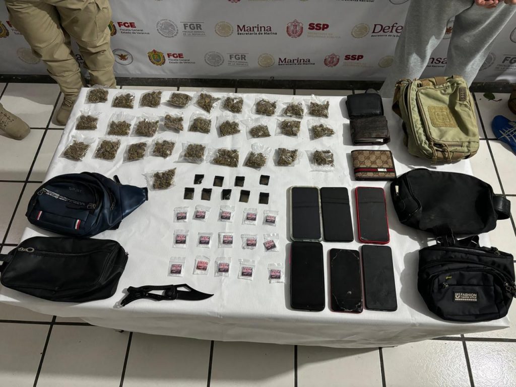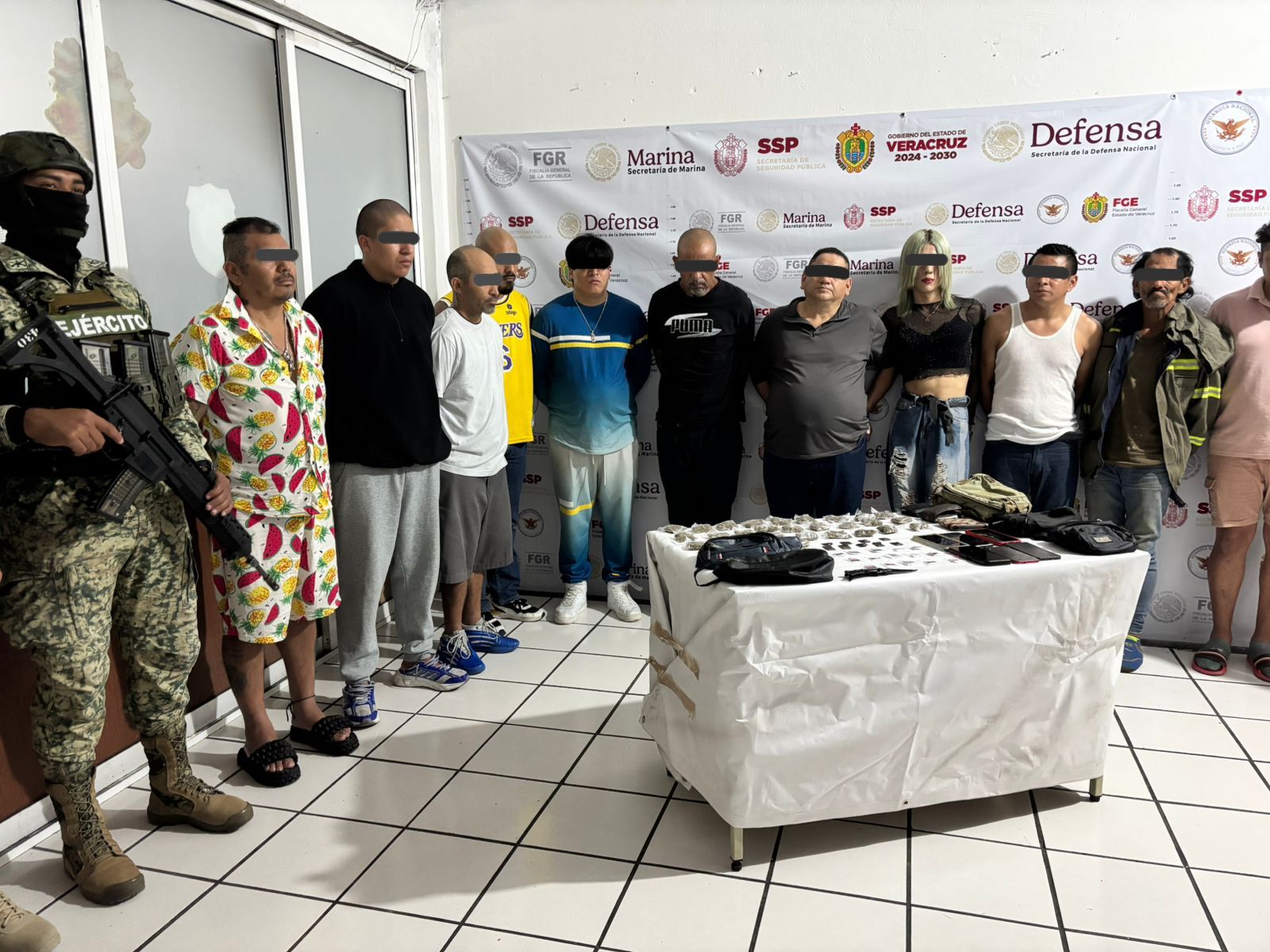 Como resultado de las acciones, se logró la detención de 11 personas, así como el aseguramiento de 1 inmueble, 1 vehículo, 1 motocicleta, 58 dosis de estupefacientes y 7 celulares.