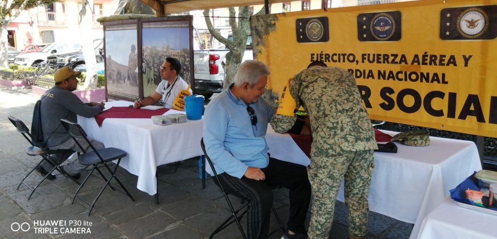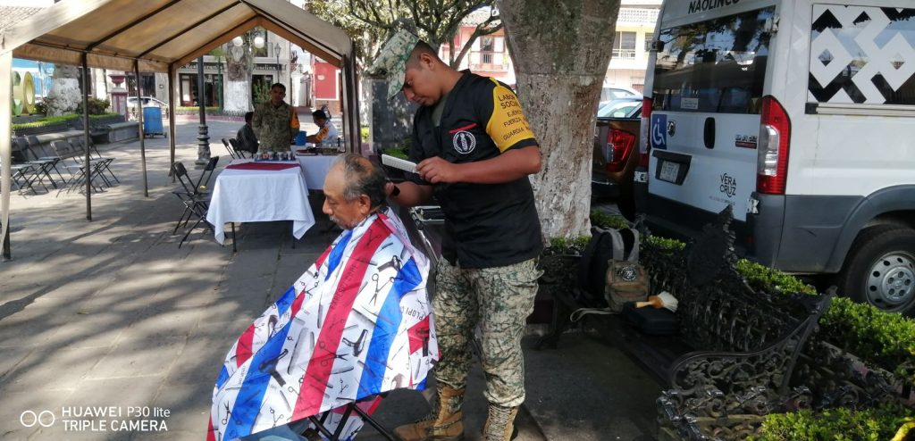 Naolinco, Ver. La mañana de este martes, elementos adscritos al 63/o. Batallón de Infantería, realizaron actividades de labor social en Naolinco, Ver., donde pobladores de referido municipio, se congregaron en el parque principal, para acudir a los módulos que se establecieron para proporcionar consulta médica y odontológica; así como servicio de peluquería.