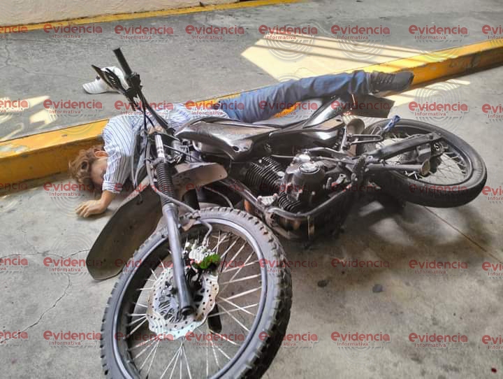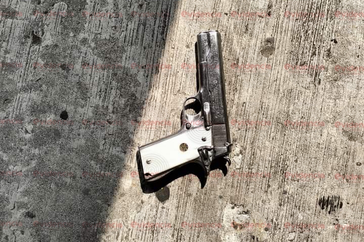 Un delincuente fue alcanzado cuando a bordo de una motocicleta intentaba ya escapar del estacionamiento el cual recibió un impacto mortal de las balas policíacas cayendo abatido cerca de la salida, a su costado cayó su arma de fuego.