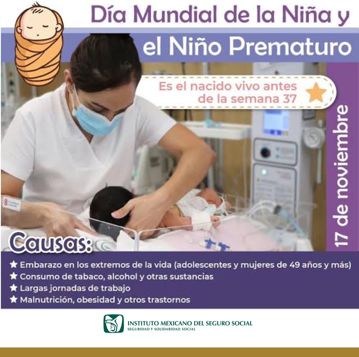 Orizaba, Veracruz.- El Instituto Mexicano del Seguro Social (IMSS) en Veracruz Sur hace las siguientes recomendaciones, para iniciar los controles prenatales tan pronto se conozca del embarazo; acudir a consulta de manera regular, no consumir alcohol y tabaco, y evitar el embarazo en edades muy jóvenes o edad tardía, en el marco del Día Mundial de la Niña y el Niño Prematuro este 17 de noviembre.