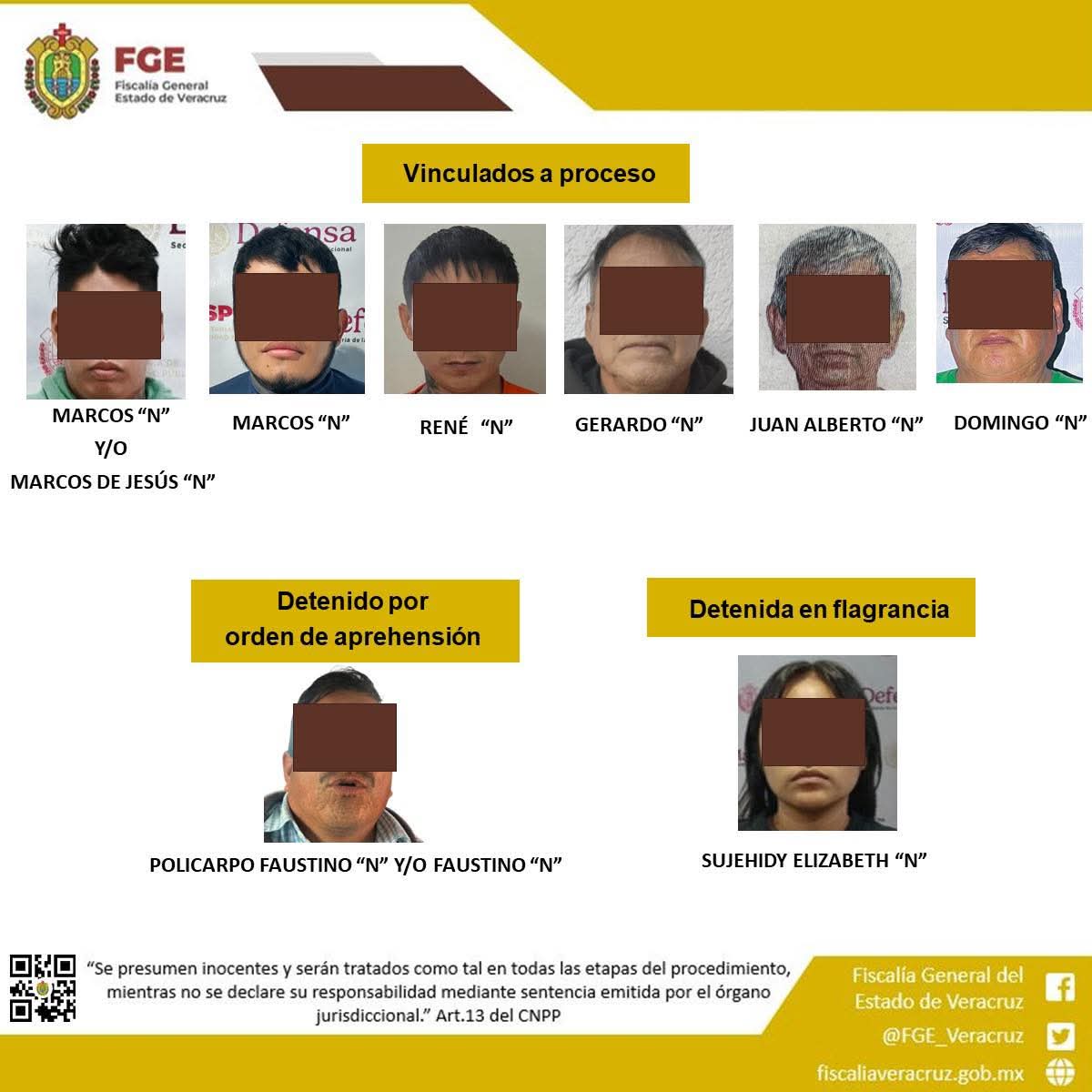 En relación con las vinculaciones a proceso por el delito de homicidio doloso calificado, estas se obtuvieron en distintos municipios: en San Andrés Tuxtla, en contra de Marcos “N” y/o Marcos de Jesús “N”, por hechos ocurridos el 14 de noviembre de 2025 en la localidad de Calería de dicho municipio; en Huatusco, en contra de Marcos “N”, por hechos registrados el 5 de octubre de 2025 en el municipio de Coscomatepec; y en Nanchital, en contra de René “N”, por su presunta responsabilidad en hechos ocurridos el 16 de julio de 2025 en el municipio de Ixhuatlán del Sureste.