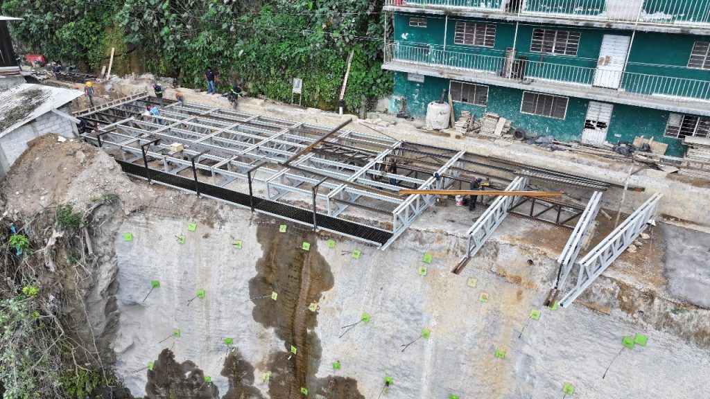 Se invierten más de 16 millones de pesos en estos trabajos, comprende estudios hidrológicos, hidráulico y geofísicos. Para la estabilización de la ladera se limpió el material derrumbado; se suministró y colocó mil 283 metros cuadrados de malla triple torsión para protección de taludes; suministro y colocación de 87 anclas con varilla de una pulgada de diámetro alojadas en barrenos de 3 pulgadas de diámetro con inyección de mortero de 200 KG/CM.