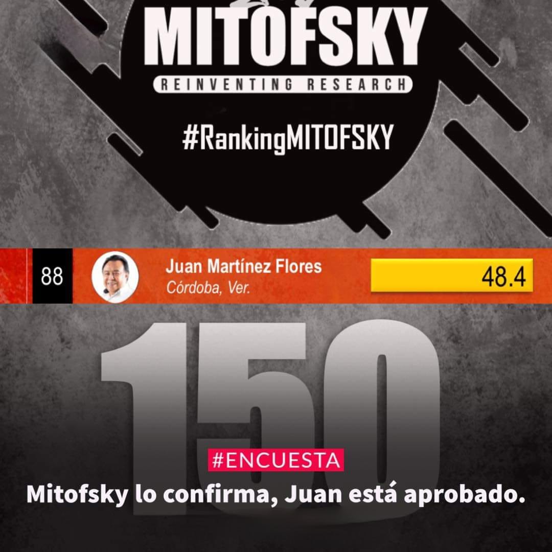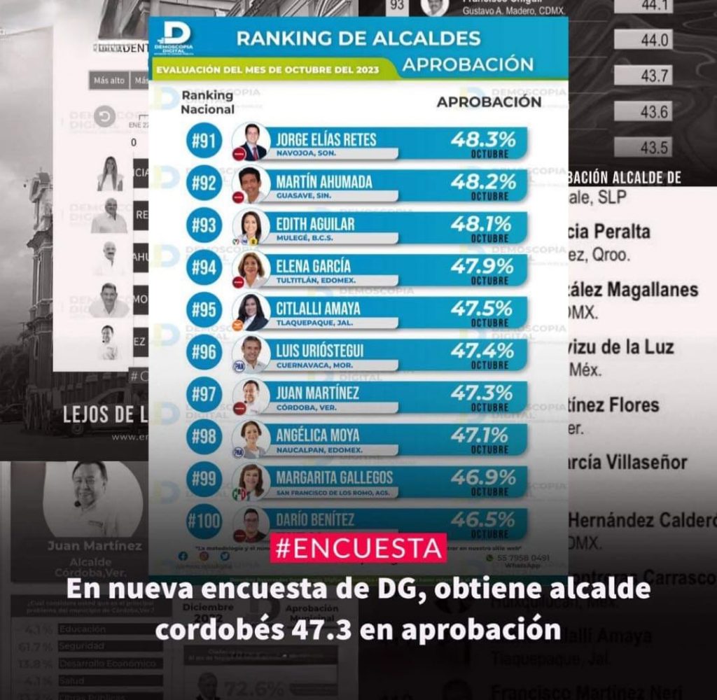 La Encuestadora Mitofsky confirma que el alcalde de Córdoba Juan Martínez Flores subió en el Rankin de los 150 alcaldes mejor