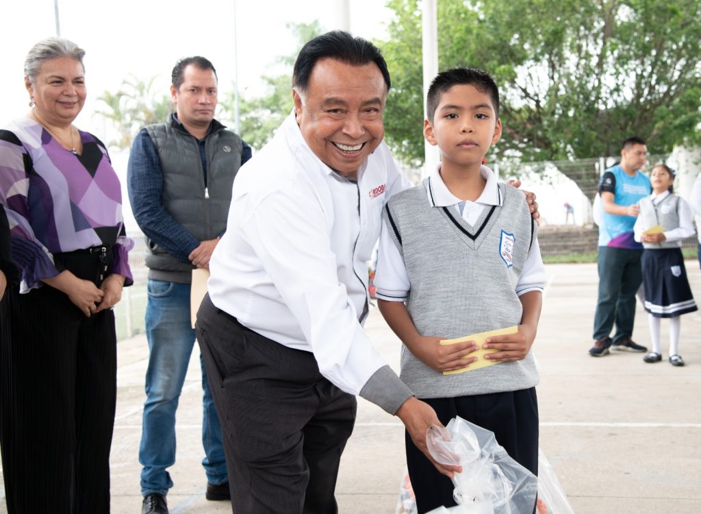 En compañía de la Síndica, Vania López González y de los regidores Georgina Aguilar Sánchez, Sergio Armando de la Llave Migoni y Olga Leticia Luz López, la primera autoridad dijo ante los alumnos y padres de familia que son testigos del apoyo que tienen todos los niños y niñas del municipio con este estímulo a sus conocimientos y dedicación a la educación, siendo un reconocimiento a su esfuerzo.