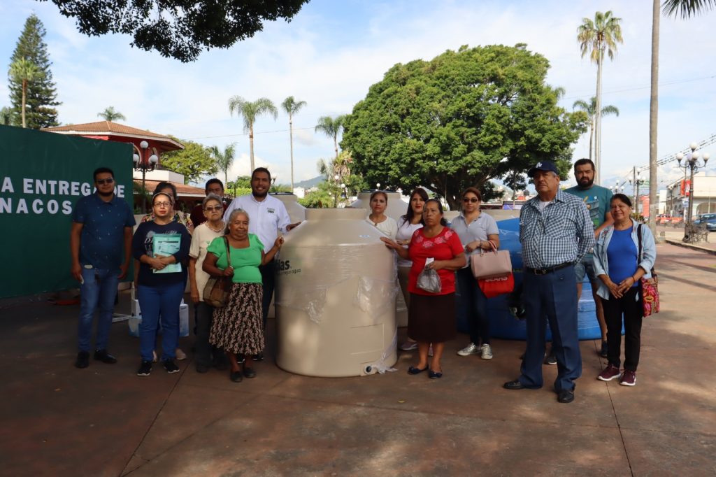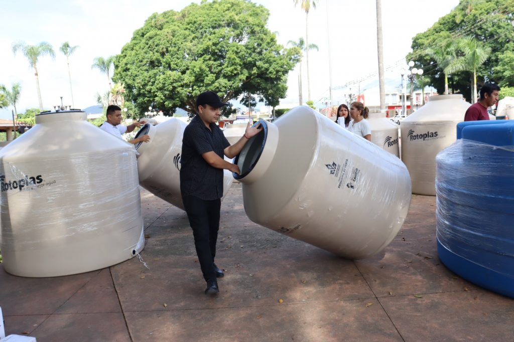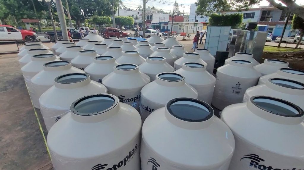 En esta tercera entrega de apoyos en la explanada del parque Lázaro Cárdenas, 49 familias adquirieron tinacos de mil 100 litros y 2 mil 500 litros, así como una cisterna de 5 mil litros, purificadores, filtros y una bomba centrifuga.