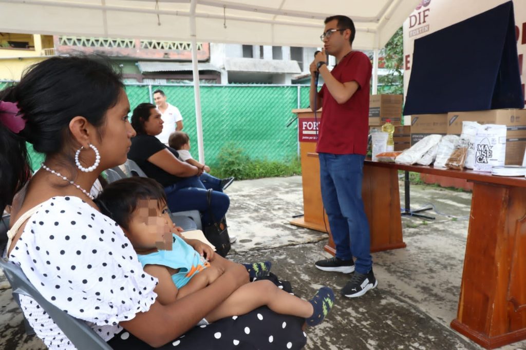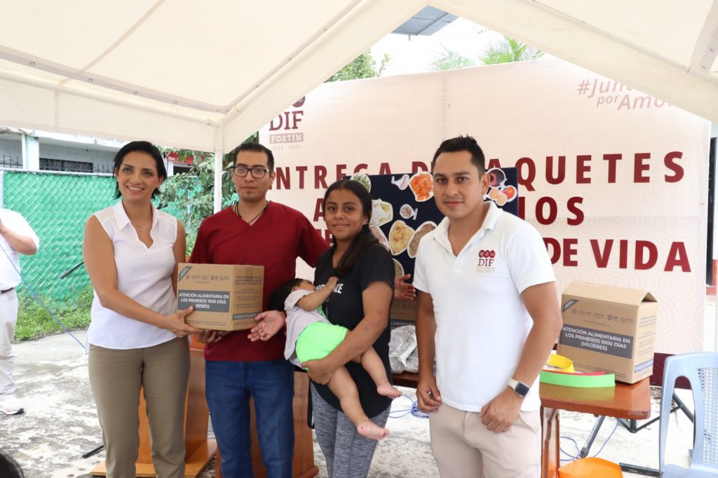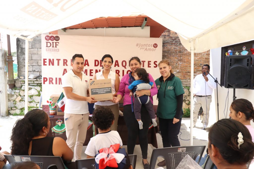 Fortín, Ver. – La Directora del DIF Municipal, Trinidad Puentes Esquivel y el coordinador de Plan Alimentario, José María Delgado Romero, entregaron el programa Mil Días de Vida a mujeres embarazadas y aquellas que sus hijas e hijos cumplen la edad correspondiente al beneficio, esto se llevó a cabo en los CDI de Monte Blanco, Pueblo de las Flores y San José.