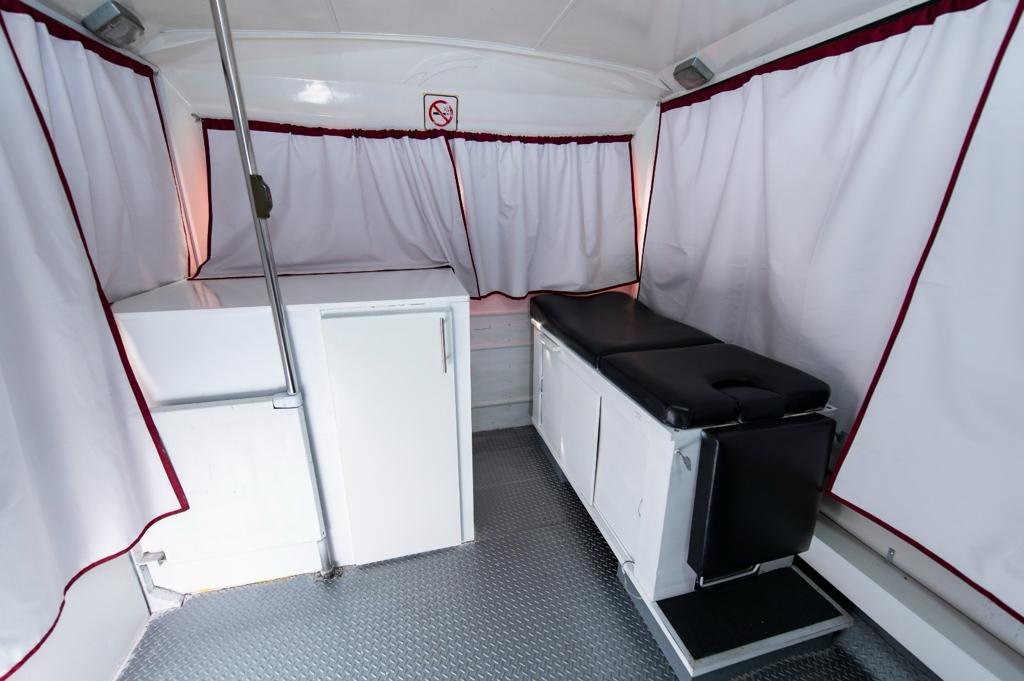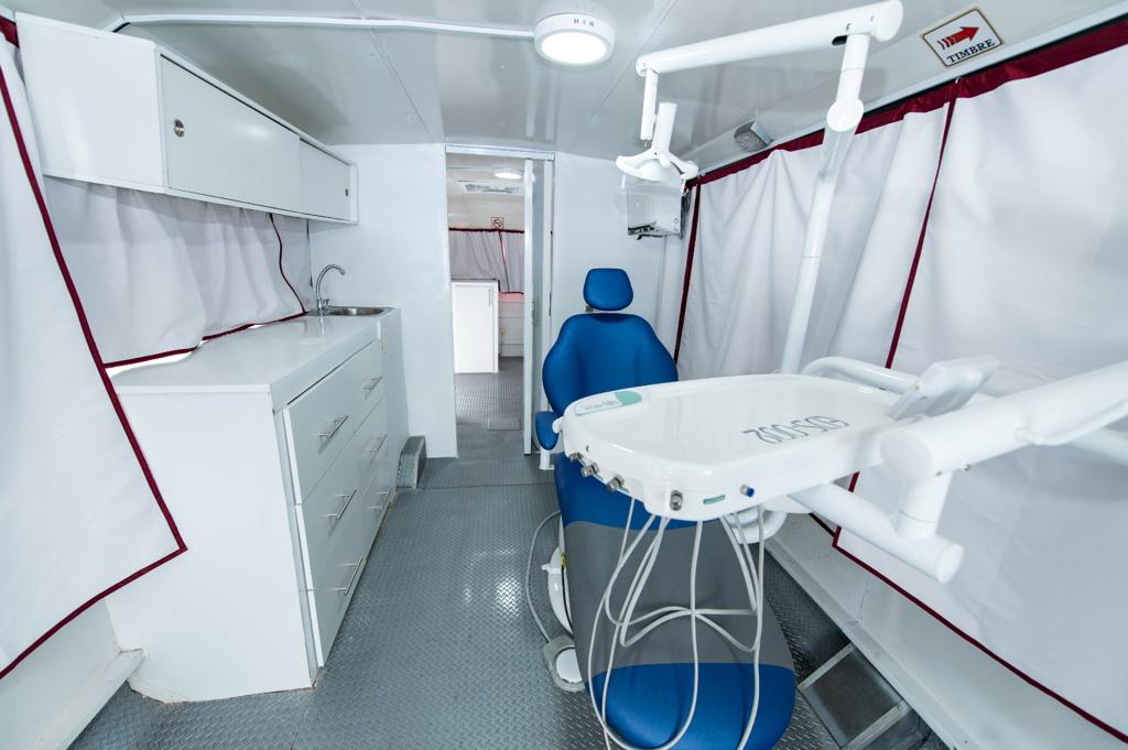 Esta unidad se encuentra dividida en dos áreas: dental para lo cual fue adaptada completamente nueva y funcional con compresor, sistema de riego que permitirá el servicios como de extracciones, colocación de amalgamas, resinas. Asimismo, se podrán ofrecer consulta médica general.