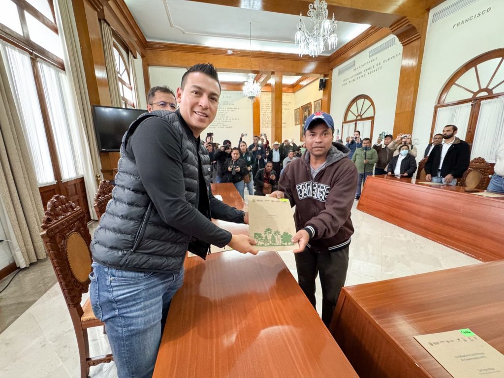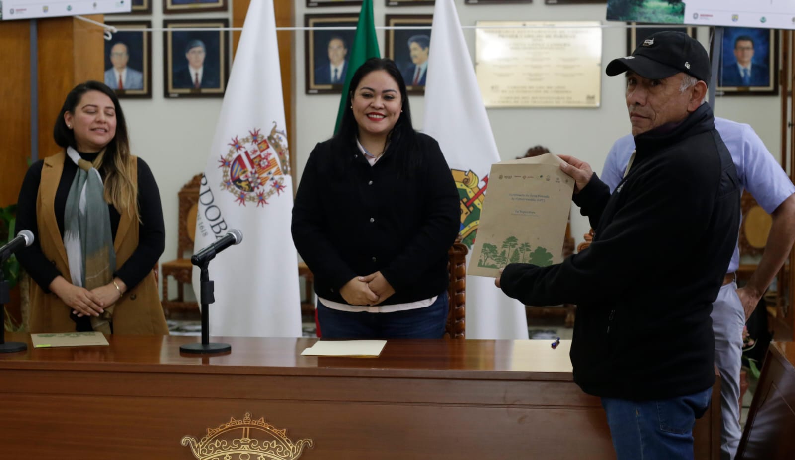 En el salón central del Palacio Municipal se llevó a cabo la entrega de certificados y la donación de señalética a productores de café bajo sombra de municipios de Córdoba, Omealca, Tezonapa y Atzacan.