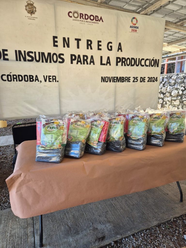 Córdoba, Ver., 25 de octubre de 2024. Productores de este municipio acudieron esta mañana al parque de Floricultura para ser beneficiados con el Programa de Insumos para la Producción, donde, a través de la jefatura de Fomento Agropecuario, perteneciente a la dirección de Desarrollo Económico del Ayuntamiento, recibieron productos como fertilizantes, bolsas de vivero, melaza y abamectina, que servirán para sus actividades diarias.