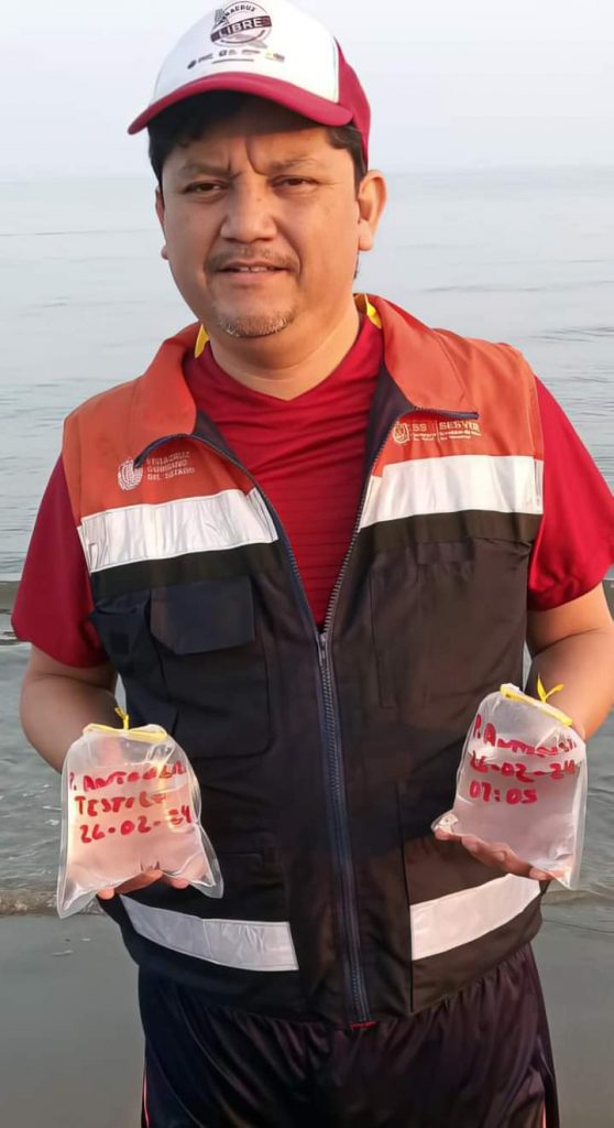 Xalapa, Ver., 15 de marzo de 2024.- En cumplimiento con la Ley General de Salud y el Reglamento de la Comisión Federal para la Protección contra Riesgos Sanitarios, la Secretaría de Salud y Servicios de Salud de Veracruz, lleva a cabo la vigilancia permanente de agua de mar en playas del litoral veracruzano, para garantizar condiciones seguras al visitante, como parte del “Operativo Semana Santa 2024”.