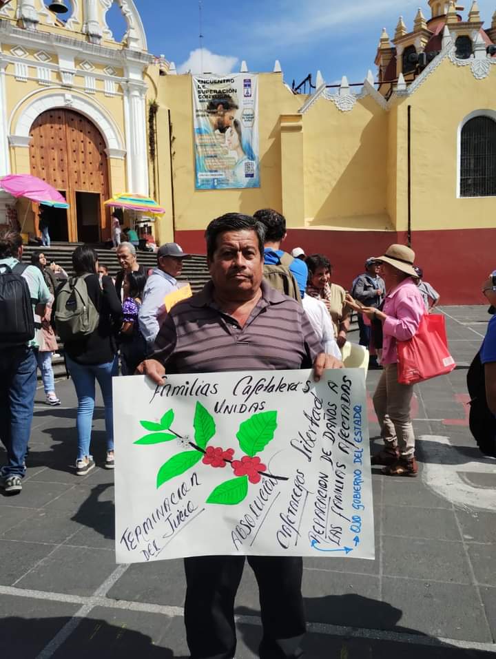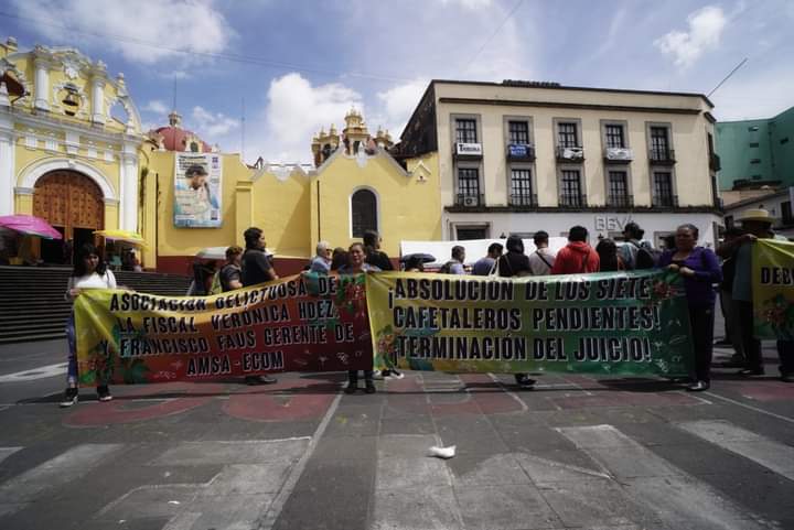 Xalapa, Ver, 06 de agosto de 2024.- Cafetaleros de la región de las Altas Montañas protestaron de manera pacífica este martes frente al Palacio de Gobierno de la capital del estado, esto en exigencia para que se haga justicia por el encarcelamiento y presentación de pruebas falsas que armó la empresa transnacional AMSA (Agroinsustrias de México SA), en contra de 12 productores de café y activistas que presuntamente encabezaban un movimiento legítimo por prácticas monopólicas que la empresa realiza y que perjudica el bolsillo de los caficultores.