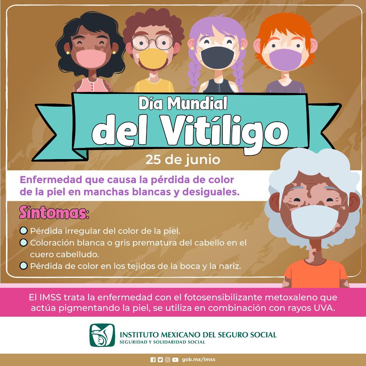 En el marco del Día Mundial del Vitíligo, el Instituto Mexicano del Seguro Social (IMSS) en Veracruz Sur informa sobre esta enfermedad, la cual inicia en la infancia y adultez mayormente entre los 20 años de edad.
