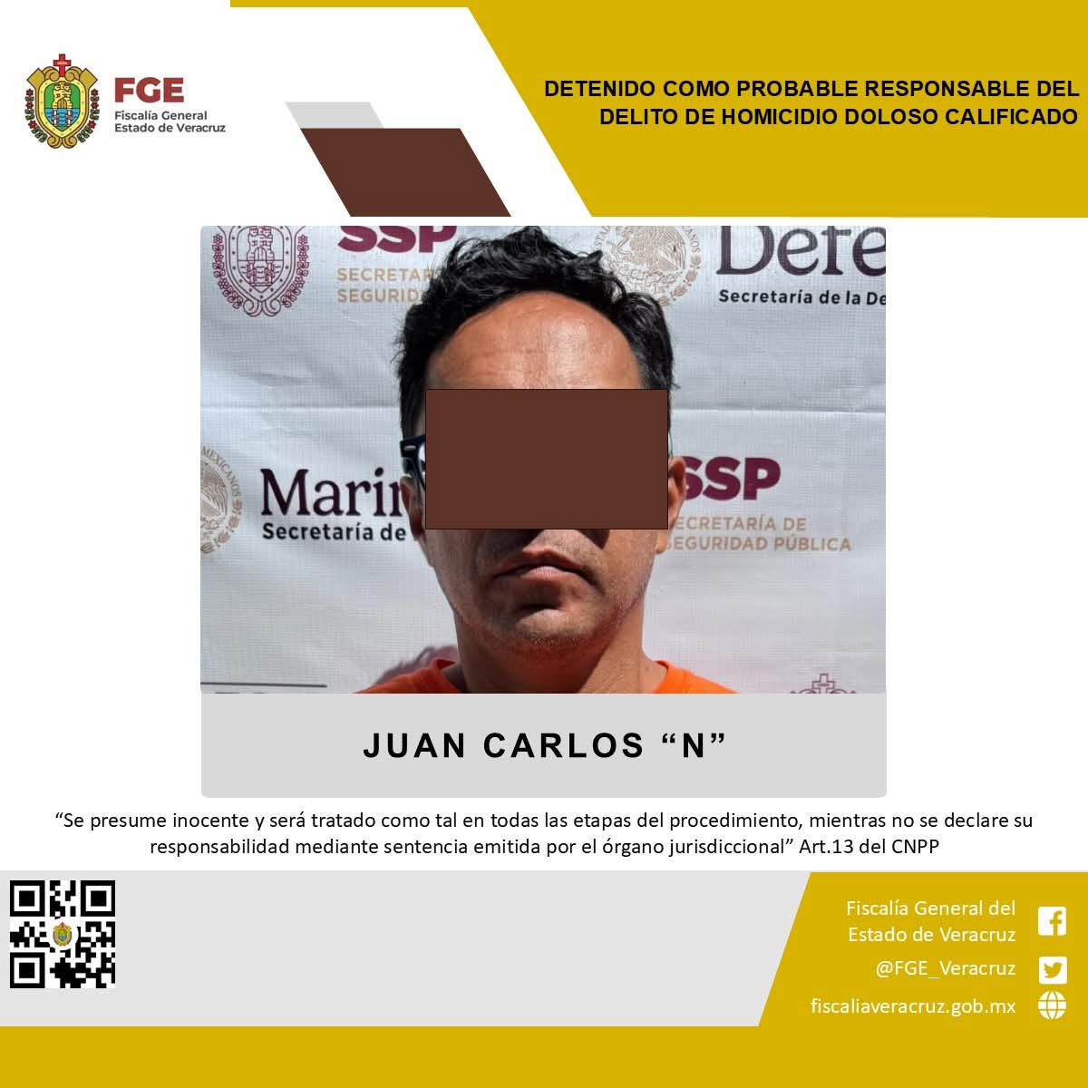 Coatepec, Ver., 14 de agosto de 2025.-La Fiscalía General del Estado informa que, como resultado de investigaciones ministeriales y acciones operativas, elementos de la Policía Ministerial ejecutaron una orden de aprehensión en contra de Juan Carlos “N”, como probable responsable del delito de homicidio doloso calificado, en la localidad de Pacho Viejo, perteneciente al municipio de Coatepec.
