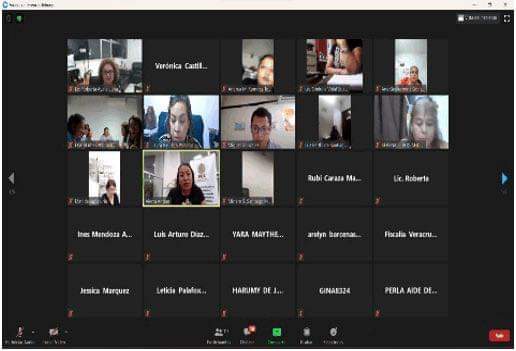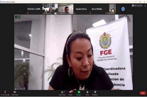 Xalapa, Ver., 2 de septiembre de 2023.- Ayer, la Fiscalía General del Estado, encabezada por Verónica Hernández Giadáns, a través de la Fiscalía Especializada en Investigación de Delitos de Violencia contra la Familia, Mujeres, Niñas y Niños y de Trata de Personas, llevó a cabo una plática vía remota con Fiscales y Auxiliares Especializadas y Especializados en el Estado.