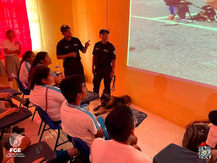 Ciudad Isla, Ver., 6 julio 2023.- La Unidad Especializada en Combate al Secuestro a través de la Unidad Canina UECS y en coordinación con el Consejo Estatal de población de Veracruz, impartió pláticas preventivas en relación al maltrato animal dirigida a alumnos del TEBAEV Isla y Telesecundaria Benito Juárez.