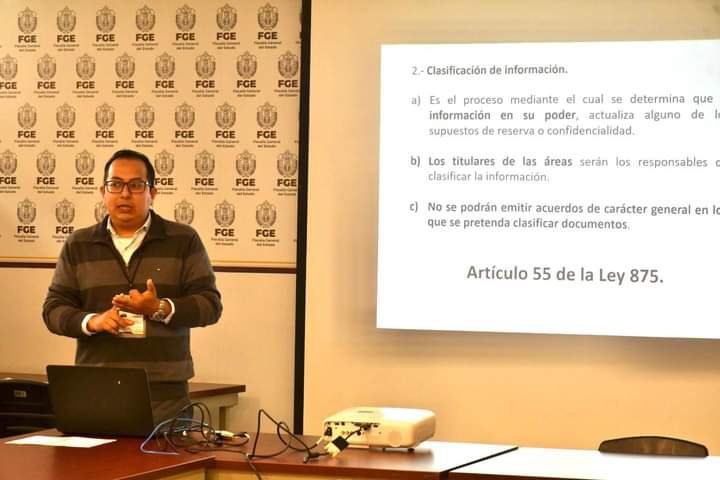Durante la capacitación se abordaron los temas: Datos Personales en Posesión de la Fiscalía General del Estado, Derecho de Acceso a la Información y Obligaciones de Transparencia inherentes a la Fiscalía General, impartidos por Yovana Lizet Lara Méndez, Analista Administrativo de la Subdirección de Datos Personales; Víctor Manuel Ávila Blancas, Jefe del Área de Acceso a la Información y José Juan Cerecedo Salazar, Responsable del Área de Obligaciones de Transparencia, respectivamente.