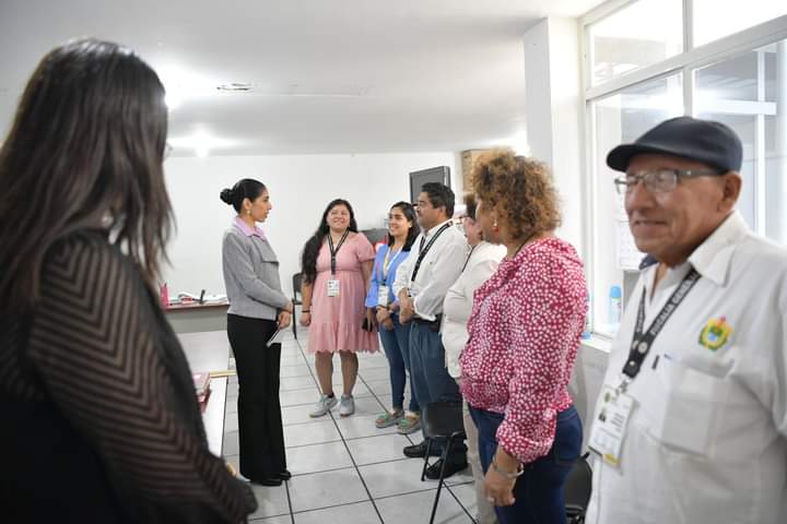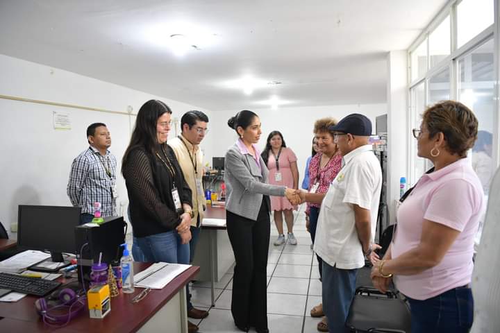 Acompañada por Yamili Solís Rico, encargada de la Sub-Unidad, atendió a usuarios, constató las actividades que realizan las y los servidores públicos de las diferentes áreas, y escuchó sus peticiones para mejorar el servicio.