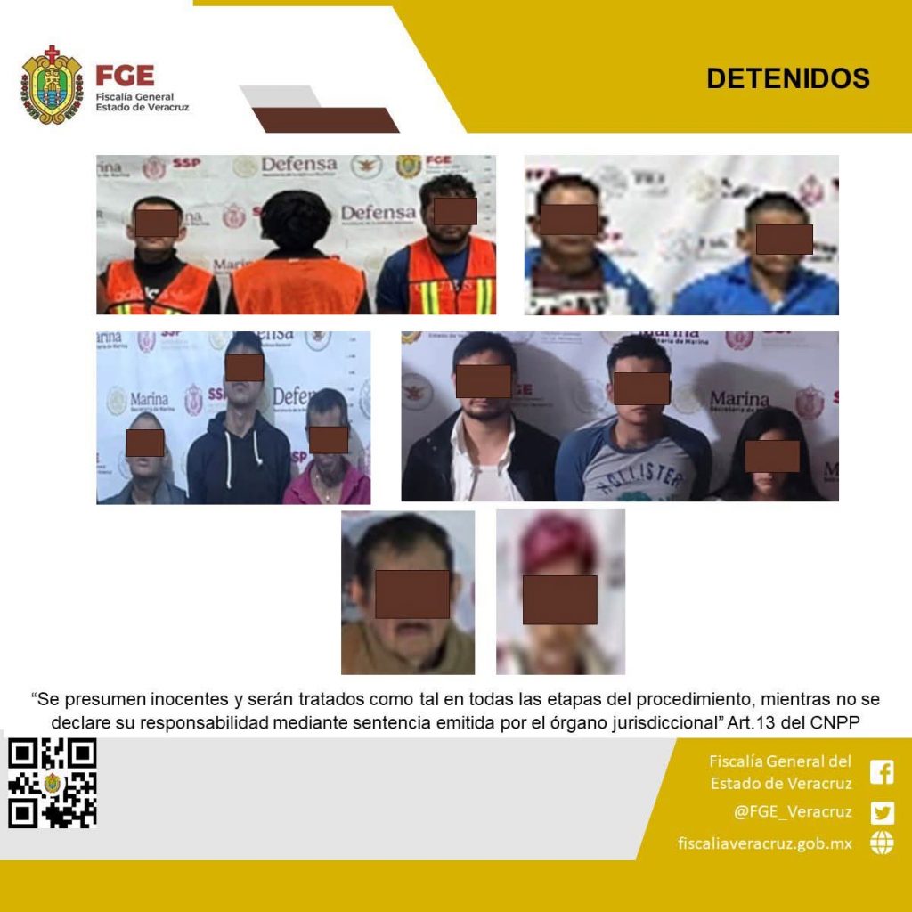 Los cateos se efectuaron en los municipios de Córdoba, Amatlán de los Reyes, Zongolica, Tuxpan, Álamo, Veracruz, Medellín de Bravo, Boca del Río, Puente Nacional, Tlapacoyan, Coatepec, Jalacingo, Tierra Blanca y Las Choapas, donde fue asegurada hierba verde seca con características similares a las de la marihuana, una sustancia y piedras blancas con características similares a las del cristal, teléfonos, motocicletas, dinero en efectivo, pipas, vehículos, algunos de los cuales contaban con reporte de robo o alteraciones, cargadores, casquillos y cartuchos balísticos.