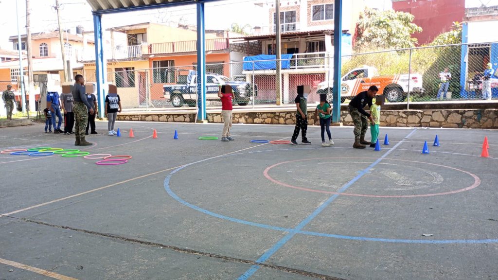 En el lugar comenzaron las actividades de acondicionamiento físico y carrera de obstáculos en las que participaron elementos de la Marina, las actividades están coordinadas por la titular de Prevención al Delito Lilia Márquez González.