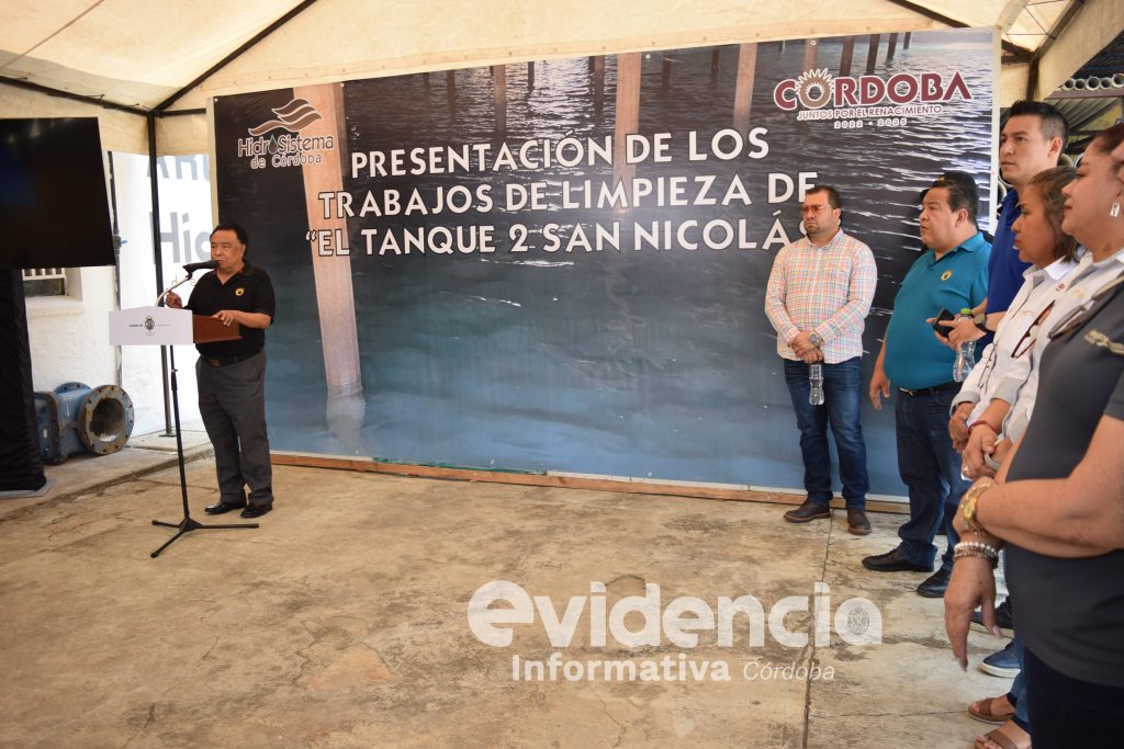 Se retiraron más de 700 metros cúbicos de sedimento y objetos extraños; los trabajos iniciaron en enero del presente año y culminaron en marzo. Acompañado de María del Rosario Palafox Aguilera, directora de Hidrosistema de Cordoba, el presidente municipal señaló que era prioritaria la limpieza del tanque, puesto que recibe agua de 3 manantiales y distribuye a ocho tanques que, a su vez, dispersan el agua al 60% de la población cordobesa.