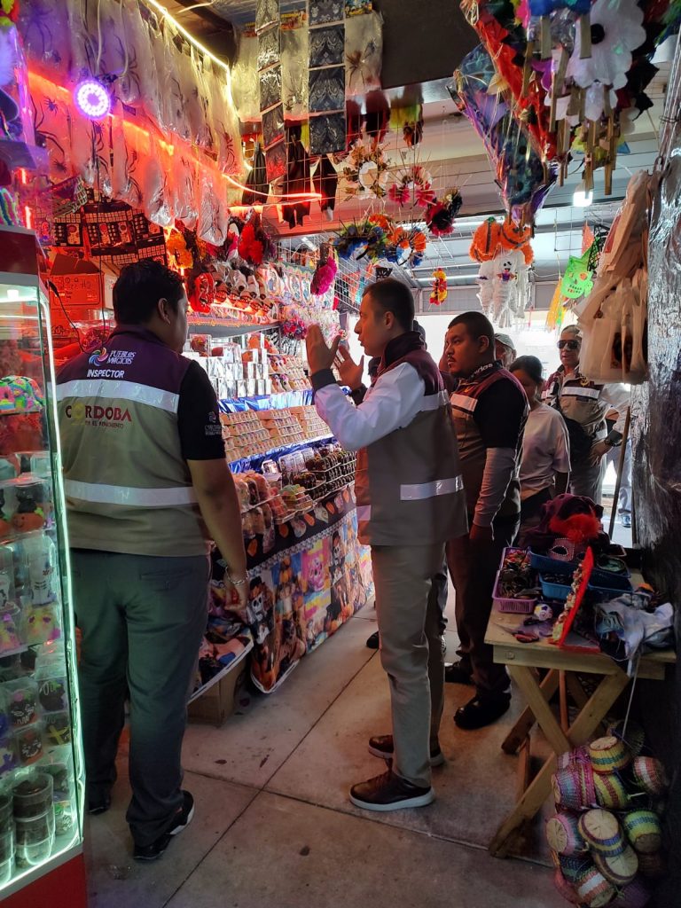 Córdoba, Ver., 24 de octubre de 2024. – Con el objetivo de mantener el orden y la seguridad durante las festividades de Día de Muertos, el Ayuntamiento de Córdoba, a través de sus áreas de Comercio, Policía Municipal, Protección Civil, Tránsito y Jurídico, realizó un operativo en el Mercado Revolución. En este recorrido, se invitó a los locatarios a respetar los espacios asignados para asegurar una circulación fluida de las personas que visitarán el zoco en los próximos días.