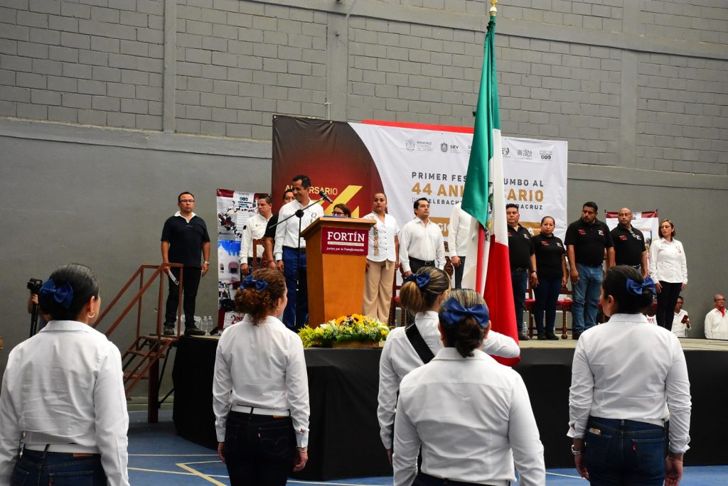 En el auditorio de la unidad deportiva Eliézer Morales, se realizó el evento que comenzó con un recorrido por las principales calles de Fortín, posteriormente las autoridades educativas participaron en el acto cívico y un programa artístico cultural.