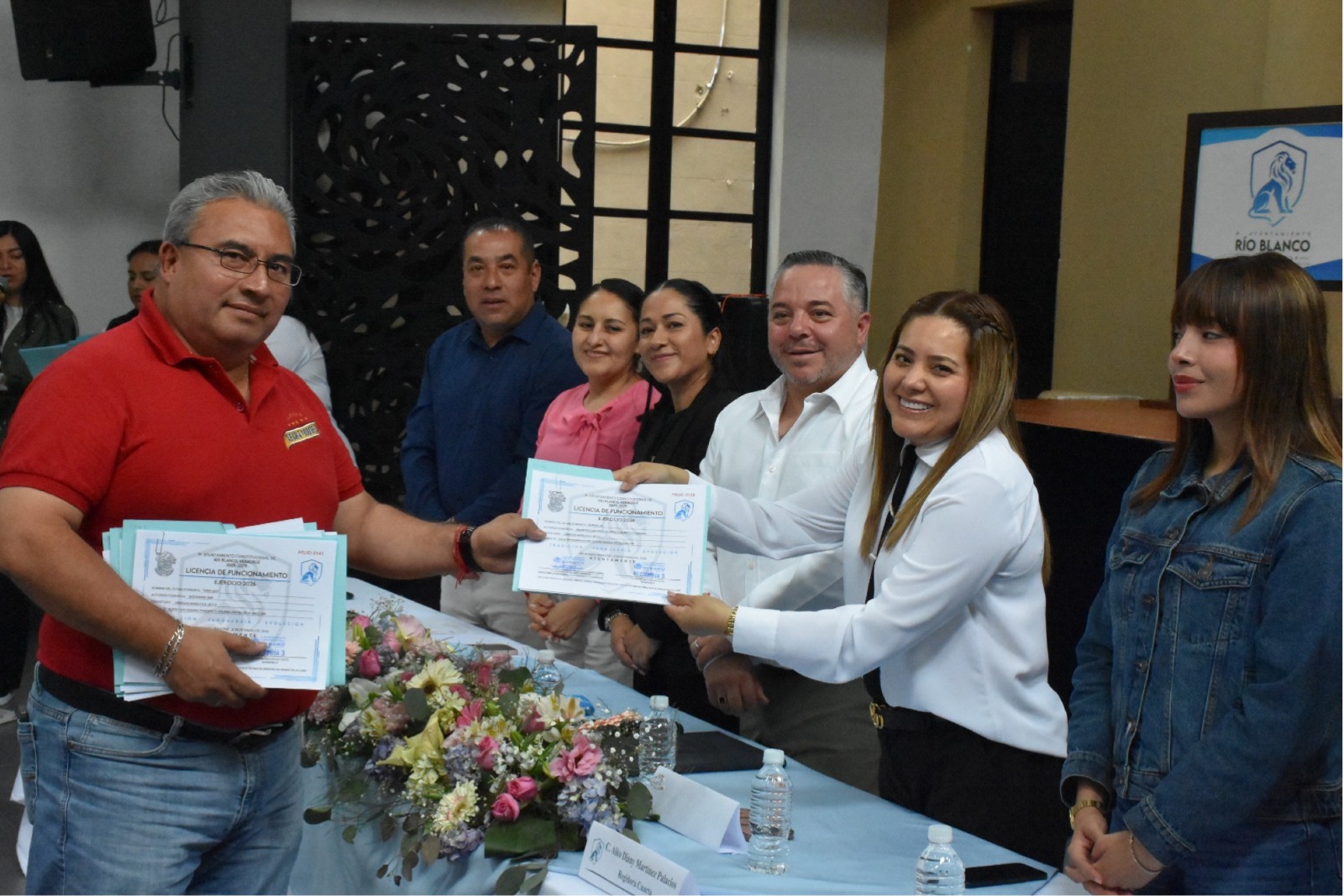 Río Blanco, Ver., a 25 de marzo del 2026.- Para fortalecer la economía local y brindar certeza a los negocios establecidos, el Ayuntamiento de Río Blanco, encabezado por el presidente municipal José Antonio May González, llevó a cabo la entrega de cédulas de licencias de funcionamiento a comerciantes, empresarios y emprendedores del municipio.
