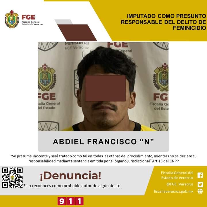 Ángel R. Cabada, Ver.- La Fiscalía Especializada en Investigación de Delitos de Violencia contra la Familia, Mujeres, Niñas y Niños y Trata de Personas realizó imputación en contra de Abdiel Francisco “N” como presunto responsable del delito de feminicidio en agravio de su madre.
