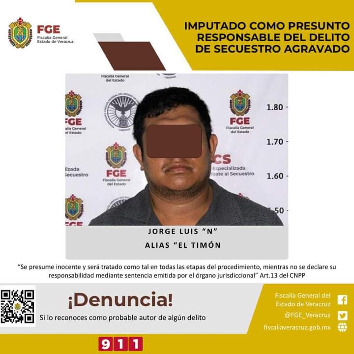 Coatzacoalcos, Ver., 27 de Agosto 2023.- La Unidad Especializada en Combate al Secuestro realizó imputación en contra de Jorge Luis “N” alias “El Timón” como presunto responsable del delito de secuestro agravado en agravio de la víctima identificada con las iniciales A.R.P.V.