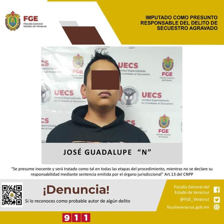 Xalapa, Ver., 27 de Agosto 2023.- La Unidad Especializada en Combate al Secuestro realizó imputación en contra de José Guadalupe “N” como presunto responsable del delito de secuestro agravado en agravio de la víctima adolescente identificada con las iniciales P.P.L.