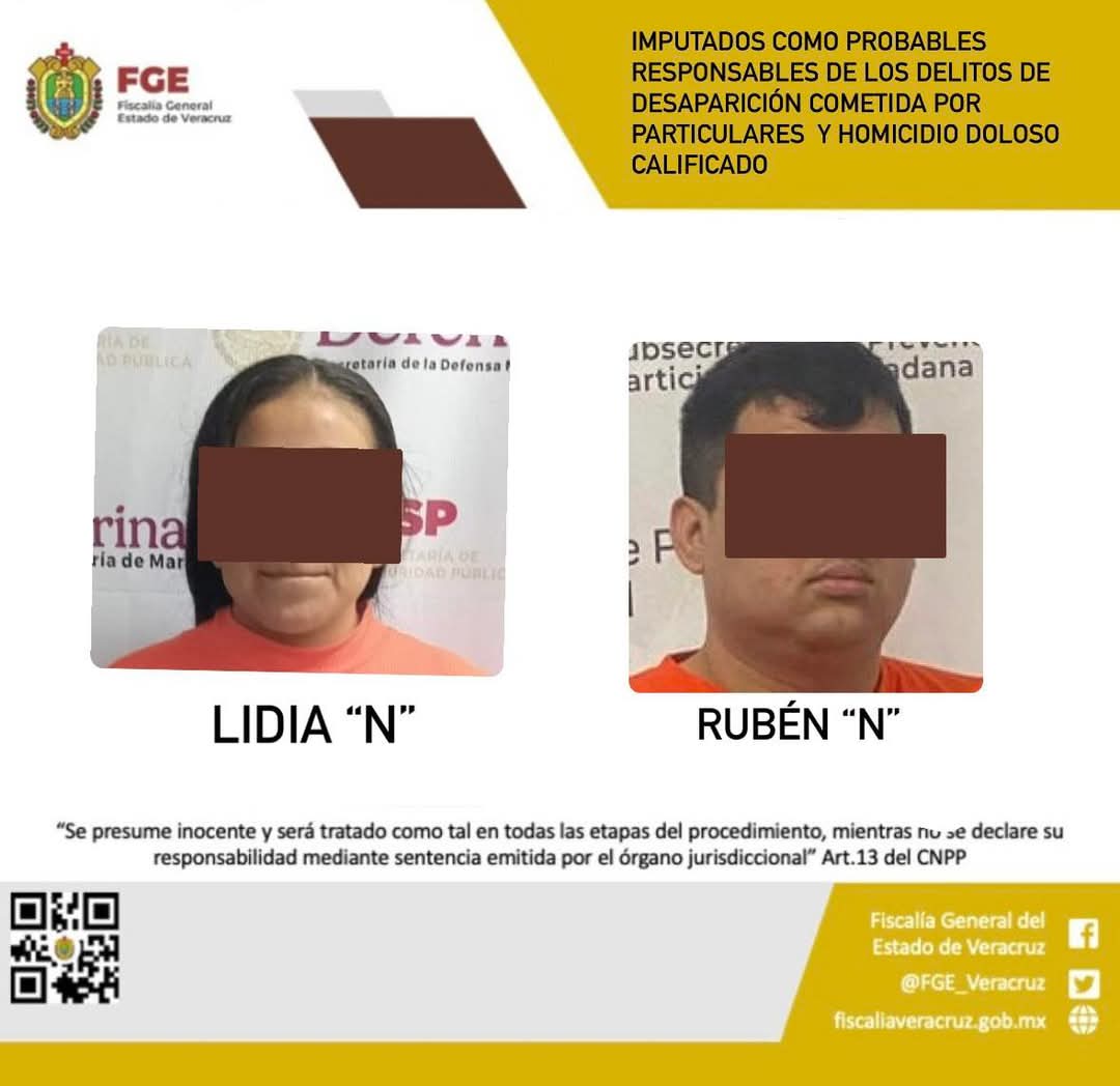 Poza Rica, Ver., a 19 de marzo del 2025.-La Fiscalía General del Estado informa que, la Fiscalía Especializada para la Atención de Denuncias por Personas Desaparecidas realizó imputación en contra de Lidia “N” y Rubén “N” como probables responsables de los delitos de desaparición cometida por particulares y homicidio doloso calificado cometido en agravio de la víctima A. Z. G.