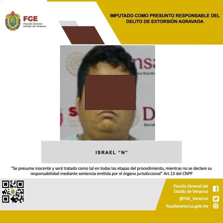 Veracruz, Ver., 18 de octubre de 2025.- La Unidad Especializada en Combate al Secuestro y la Extorsión realizó imputación en contra de Israel “N” como presunto responsable del delito de extorsión agravada, en agravio de la víctima A.C.C.B.