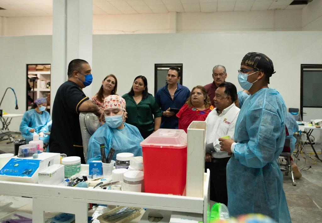 Durante la inauguración de la Brigada estuvieron presentes la Síndica, Vania López González; los regidores Erick Gasca Morales y María del Carmen Aguilar Mendoza y el Coordinador Médico del DIF, Néstor Mejía Becerril, quienes recorrieron el espacio adaptado para la atención de los pacientes.