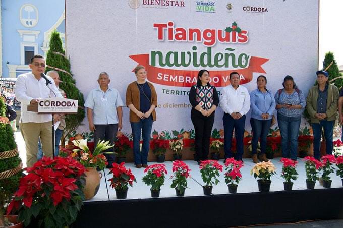Córdoba, Ver., (9 de diciembre del 2023).- Con la participación de 220 productores provenientes de 28 localidades y municipios de la región, autoridades llevaron a cabo la inauguración del «Tianguis Navideño, Sembrando Vida», que continuará hasta nañana 10 de diciembre en la explanada del parque 21 de Mayo.