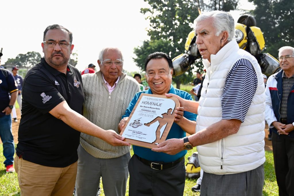 Acompañando a niños y jóvenes así como a personalidades con trayectoria deportiva en el béisbol, el Presidente Municipal Juan Martínez Flores, expresó el honor de compartir este día, para reconocer y rendir homenaje a un gran impulsor en el Rey de los Deportes Don Roberto Mansur Galán, miembro del Salón de la Fama Mexicano y que inicio en 1972 con los Cafeteros de Córdoba.