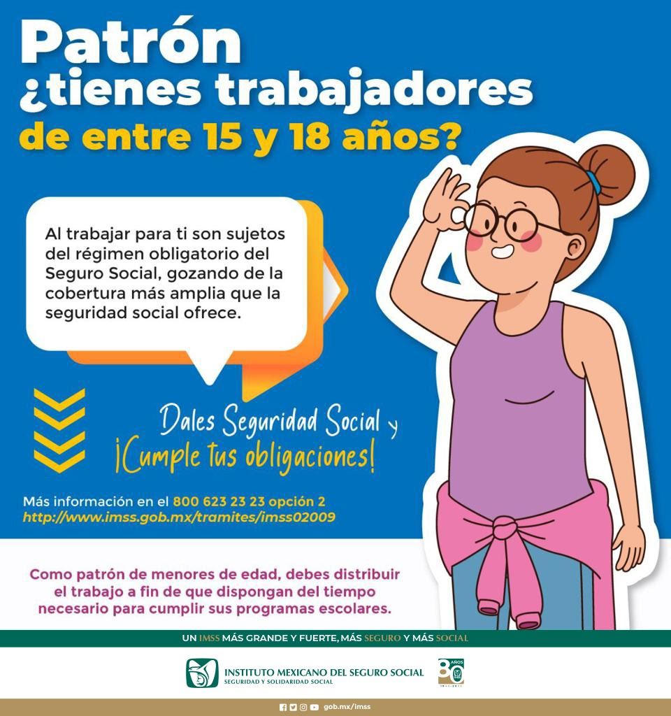 • El patrón está obligado a dar seguridad social a sus trabajadores de 15 a 18 años de edad.