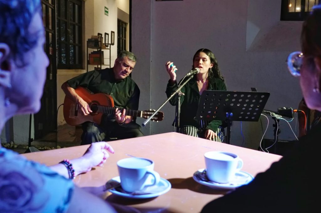Córdoba, Ver., (23 de agosto del 2023).- Con la presentación de Kalata Sax & Keter Música en el Museo del Café, se llevó a cabo la octava edición de Noche de Museos a traves de la cual, asistentes disfrutaron de temas acompañados de una taza del aromático con algunos clásicos en español e inglés.