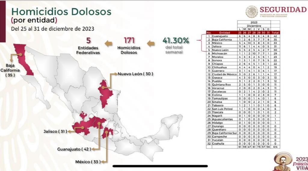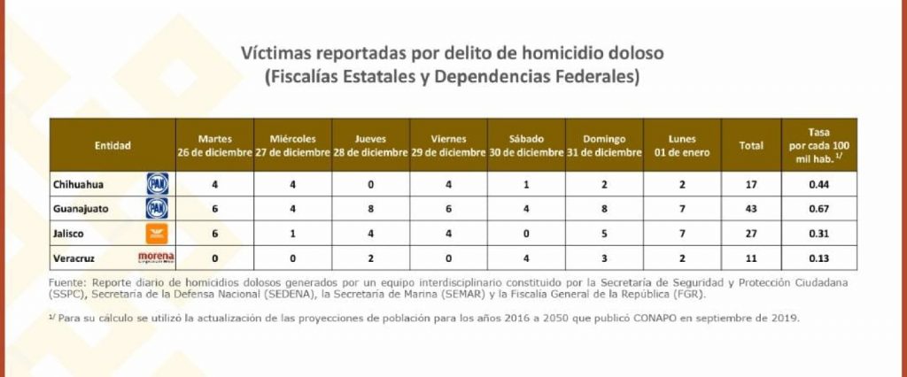 Enfatizó que durante la última semana del año, del 25 al 31 de diciembre, Veracruz contabilizó 11 casos, ubicándose en el puesto 16 en números absolutos e hizo hincapié en la significativa disparidad al señalar que Guanajuato, un estado de afiliación panista, encabezó la lista con 42 casos.