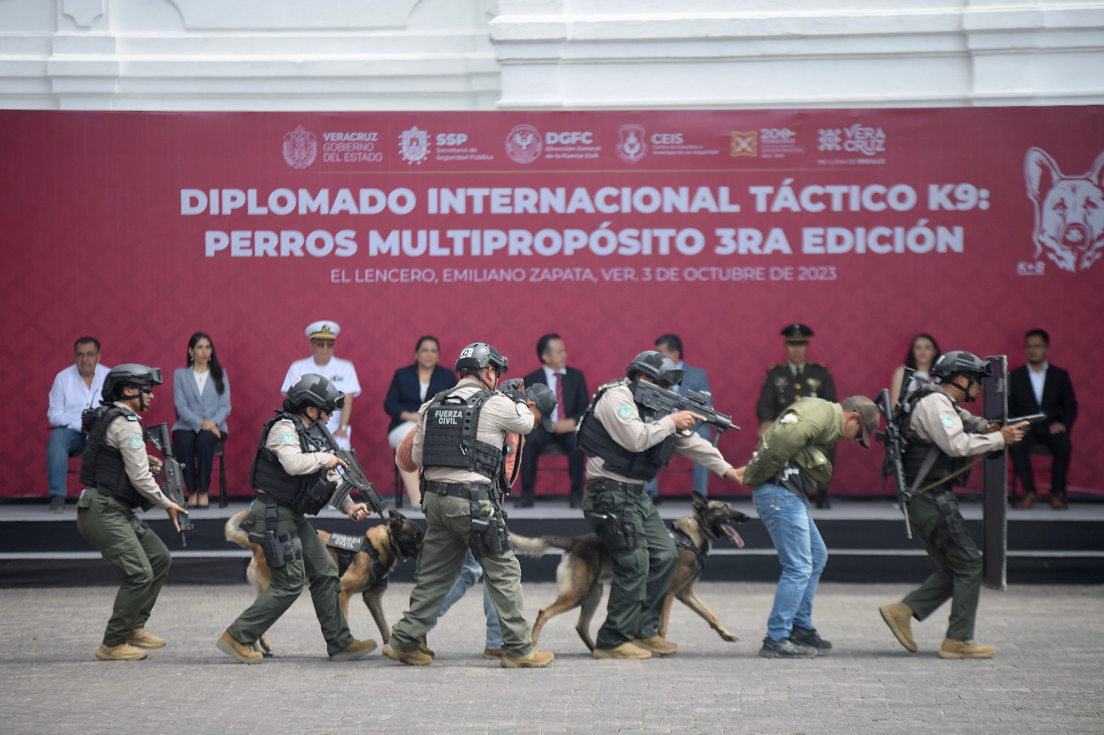 Xalapa, Ver.- Al menos 90 oficiales de 10 países de América Latina han egresado del Diplomado Táctico K9: Perros Multipropósito impartido por el Agrupamiento Canino de la Fuerza Civil, que hoy inaugura la tercera edición internacional en técnicas y habilidades preventivas del delito en el que participarán 15 instructores de cinco nacionalidades.