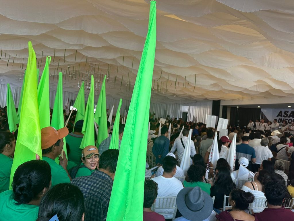 Durante la intervención de la aspirante a la Coordinación Estatal de los Comités de Defensa de la Cuarta Transformación en Veracruz, ondeaban las banderas verdes y las vivas de respaldo a «Rocío, gobernadora» sonaban fuerte.