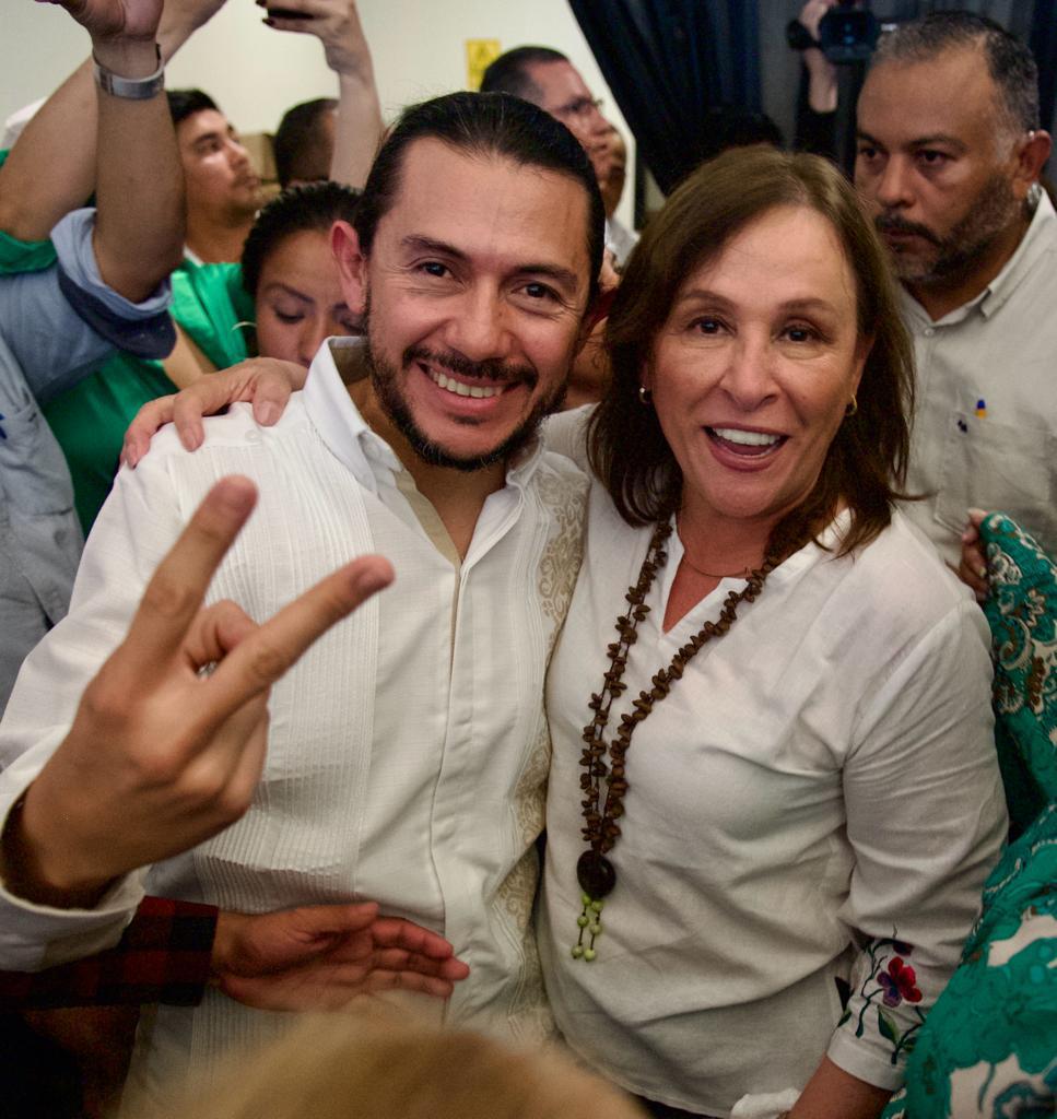 La ex secretaria de Energía se hizo acompañar de su compañero aspirante Zenyazen Escobar García, quién mostró que en Morena y el movimiento impera la unidad.