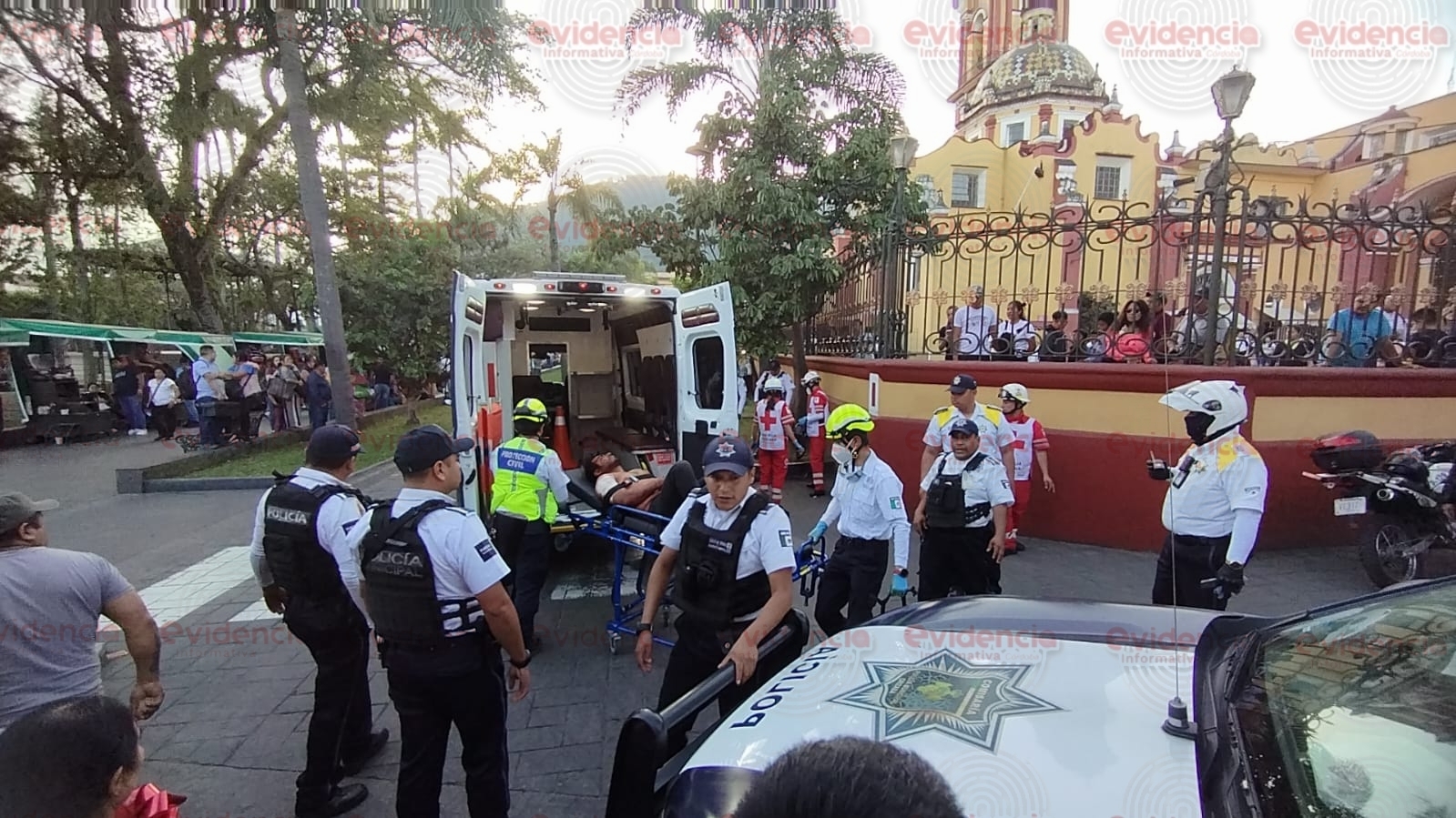 Orizaba, Ver.- Un reporte al número de emergencia 911 alertó a las diferentes corporaciones de auxilio, quienes arribaron hasta los baños públicos de la catedral San Miguel Arcángel para apoyar a un masculino el cuál se lesionó tras sufrir una caída.